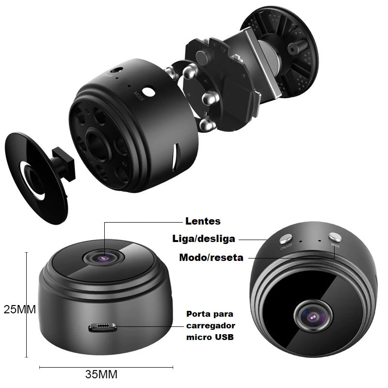 Todo mundo sabe o quanto é bom se sentir mais seguro com aquilo que é nosso! Pensando nisso, a Mini Câmera Magnética foi fabricada com um design inovador, que irá permitir você monitorar, do seu celular, sua residência, filhos, pets, empresas ou o seu escritório, de uma forma que ninguém vai saber!